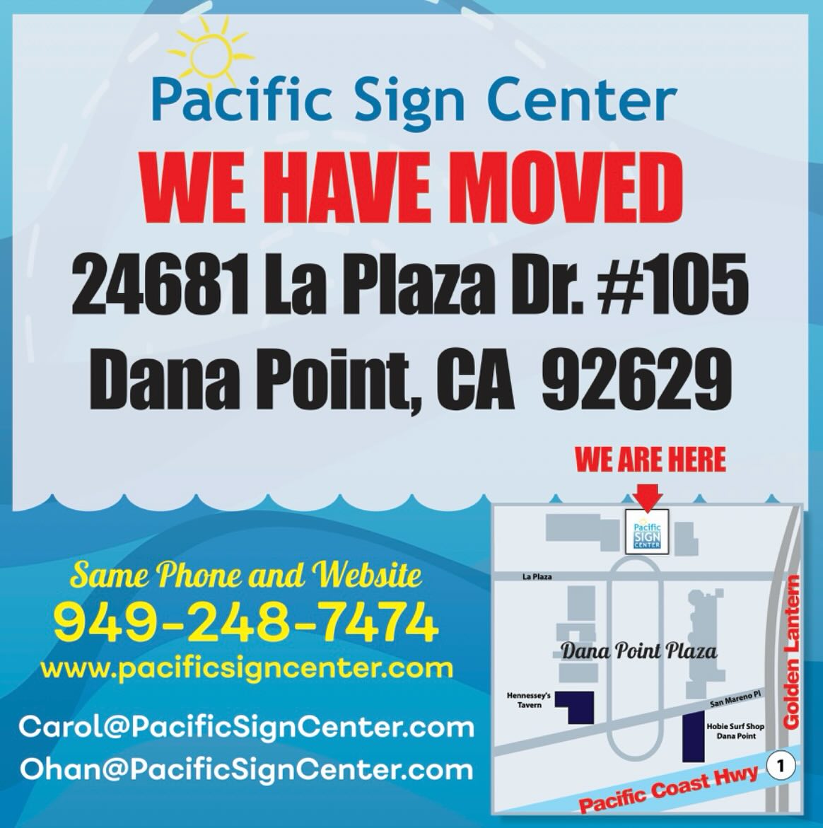 To Our Valued Customers, For the past 38 years, we have enjoyed serving our community and customer base from our small location on Del Prado. We are excited to announce that on July 1, 2024 we will be moving in order to serve our growing clientele from a larger office. Please update your records to reflect this change for mail and delivery purposes. Our new address is as follows: 24681 La Plaza Drive, Suite 105 Dana Point, CA 92629 We look forward to continued success and an exciting future with you all! #damapointsignshop #boats_by_pacificsigncenter #pacificsigncenter #boatnames #boatgraphics #missionviejo #newportbeach #cotodecaza #laderaranch #lagunahills #lakeforest #eltoro #sanjuancapistrano #ranchosantamargarita #trabucocanyon #irvine #tustin #alisoviejo #danapoint #danapointharbor #lagunabeach #lagunaniguel #orangecounty #sanclemente #coronadelmar #costamesa #lagunawoods #ranchomissionviejo #southerncalifornia #signsbypacificsigncenter