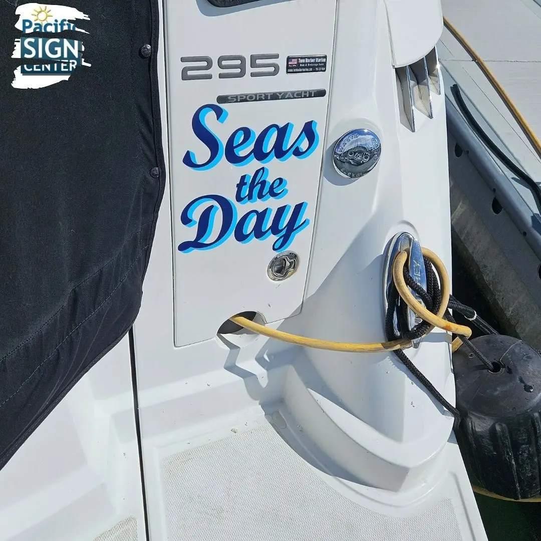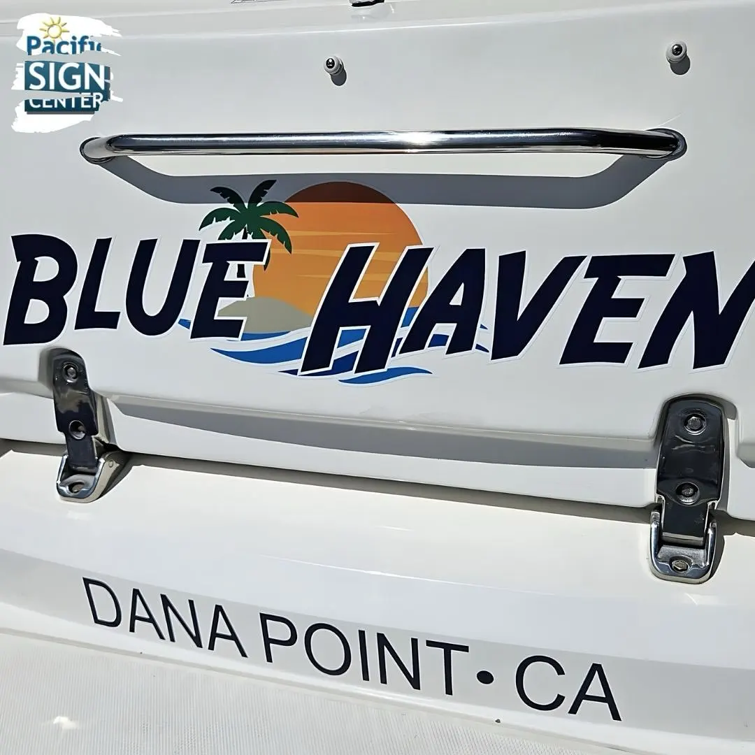 We designed, fabricated, and installed the new boat name at Dana Point Harbor. The decal is made from digitally printed, cut vinyl and was applied to the transom of the boat.#BoatLettering #DanaPointHarbor #pacificsigncenter #VinylDecals #CustomBoatNames #MarineGraphics #SailboatLife #BadBehavior #BoatLife #HarborStyle #VinylLettering #NauticalDesign