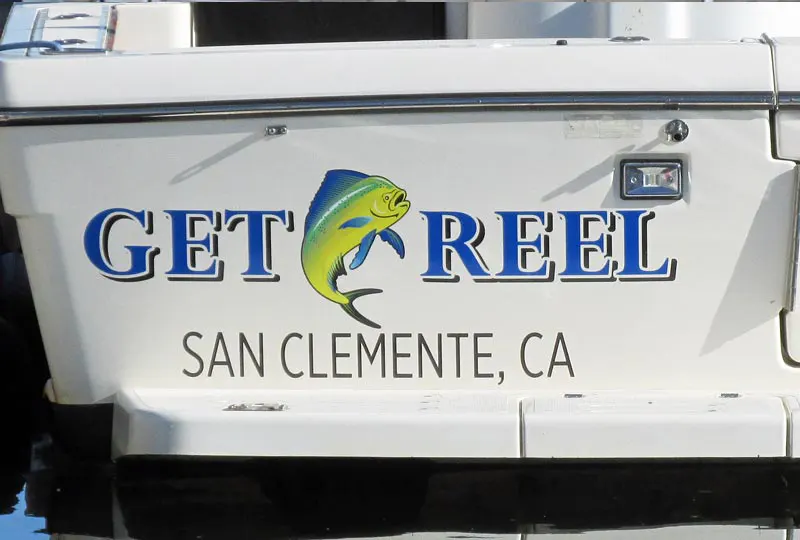A popular phrase among fishermen is “Just Sayin” with the “J” configured as a fish hook. Our boat lettering service is available throughout Orange County, CA and features high-quality, long lasting marine vinyl.